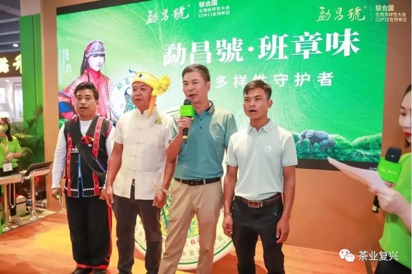 △云南勐昌茶业有限公司肖文德董事长(右一)、勐昌號品牌代言人杨丽萍(右六)出席广州茶博会开幕式典礼广东省是中国最大的普洱茶消费区,而广州茶博会更是有着“中国普洱茶第一展”之称。在本次茶博会开幕式上,勐昌號携手品牌代言人杨丽萍,与现场嘉宾共同开启“践行COP15精神 做生物多样性守护者”仪式。在这开放性的大舞台上,勐昌號携手杨丽萍向世界发起做生物多样性守护者,传递云南普洱茶、民族文化及生态理念,可以说具有发展性的时代意义。与此同时,勐昌號还在现场精心打造了首个班章生物多样性展区,把班章古茶园原生态之美以及云南特色的民族茶文化搬到了国际化的大都市,成为了本次茶博会最热闹的场馆之一,受到了广州市领导以及茶博会主办方领导的一致肯定。