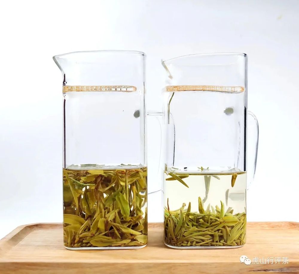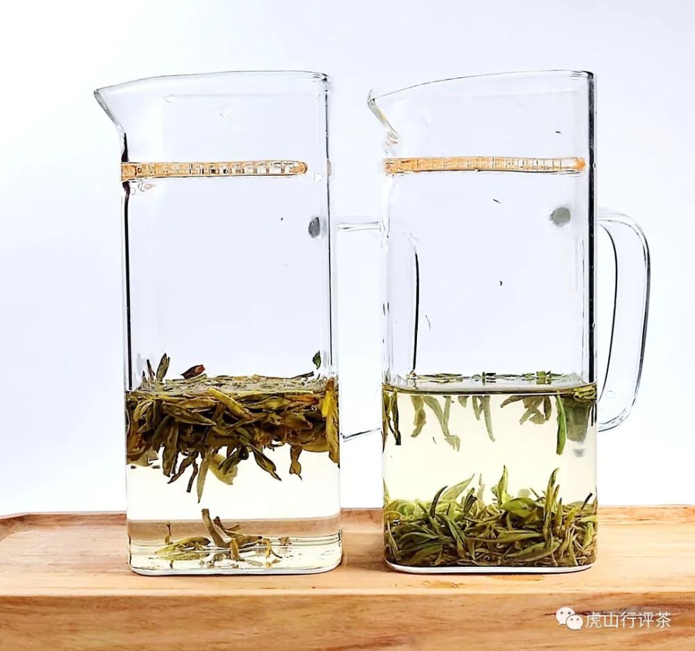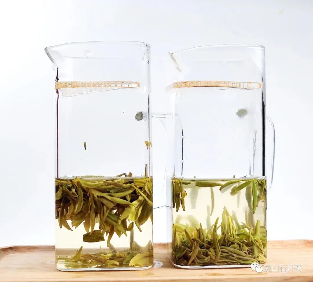 龙井在香气强度和鲜爽度上明显更好,生津回甘也更强烈。邓村绿茶苦涩更重,香气类型两者差异化明显。