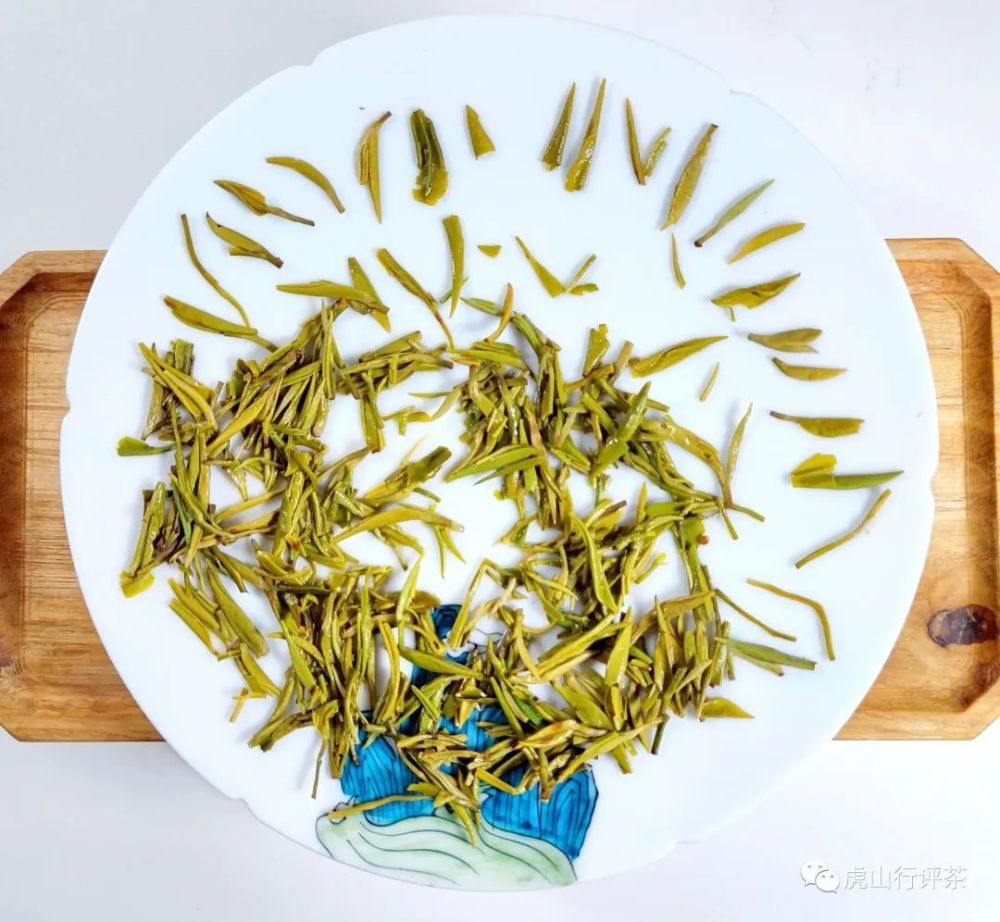 龙井:一芽二叶为主,叶片长度还算统一,也有阔叶和碎梗,特级也能算上。