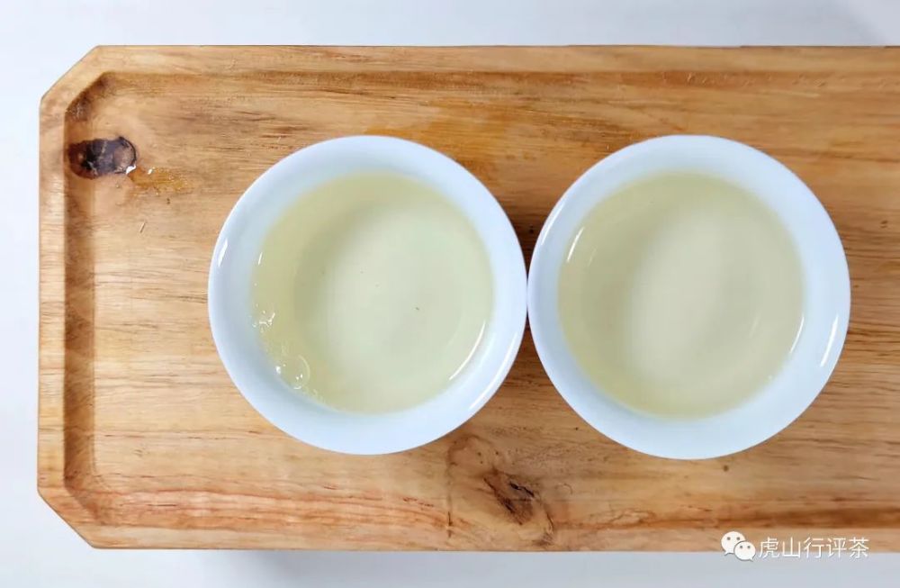 两者香气都有下降,龙井茶更明显一些,邓村绿茶苦涩有点失控,作为绿茶有点不应该,杀青火候存在问题。汤感龙井占据明显的优势。