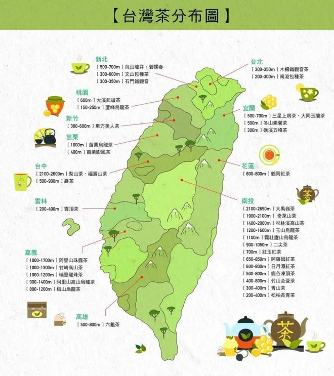冻顶乌龙,主要产于台湾鹿谷乡凤凰村、永隆村、彰雅村,茶区海拔约600-1000米,被誉为“茶中圣品”。