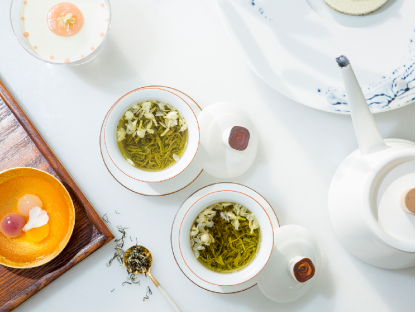在咖啡之外,现代年轻人又爱上了品茶,特别是新一代原香茉莉花茶——碧潭飘雪。