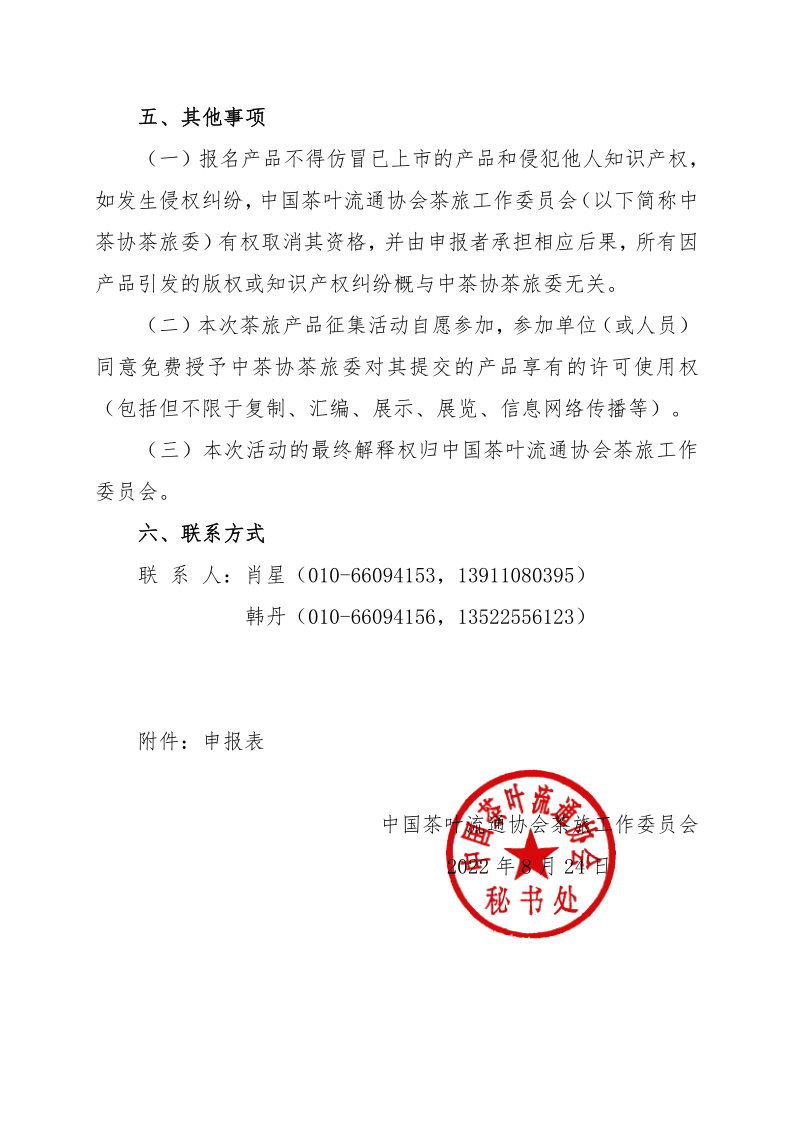 中国茶叶流通协会茶旅工作委员会关于开展2022年度茶旅产品征集推广活动的通知