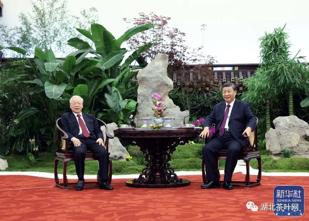 授勋仪式结束后,中共中央总书记、国家主席习近平同越共中央总书记阮富仲进行了茶叙,畅叙两党两国传统友谊和发展前景。