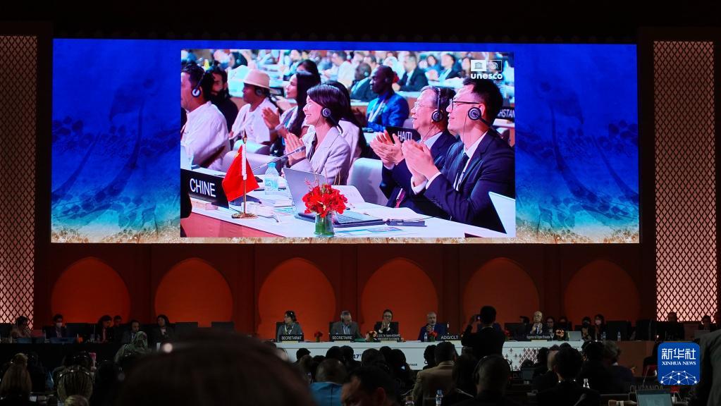 这是11月29日在摩洛哥拉巴特拍摄的联合国教科文组织保护非物质文化遗产政府间委员会第17届常会会议现场。(湖北茶叶网消息)北京时间11月29日晚,我国申报的“中国传统制茶技艺及其相关习俗”在摩洛哥拉巴特召开的联合国教科文组织保护非物质文化遗产政府间委员会第17届常会上通过评审,列入联合国教科文组织人类非物质文化遗产代表作名录。新华社记者 许苏培 摄