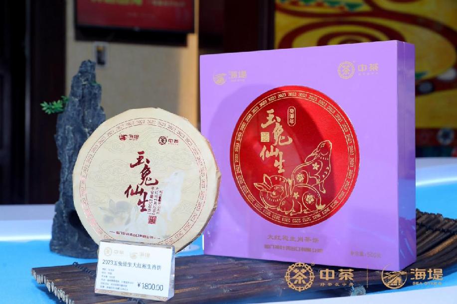 自2012年起,中茶厦门每年都会推出一款生肖饼。2023年,中茶厦门第十二款生肖闽北茶饼——玉兔仙生大红袍生肖饼如约而至。优质武夷大红袍原料、传承贡茶制作的基础上结合新工艺,极具收藏价值。