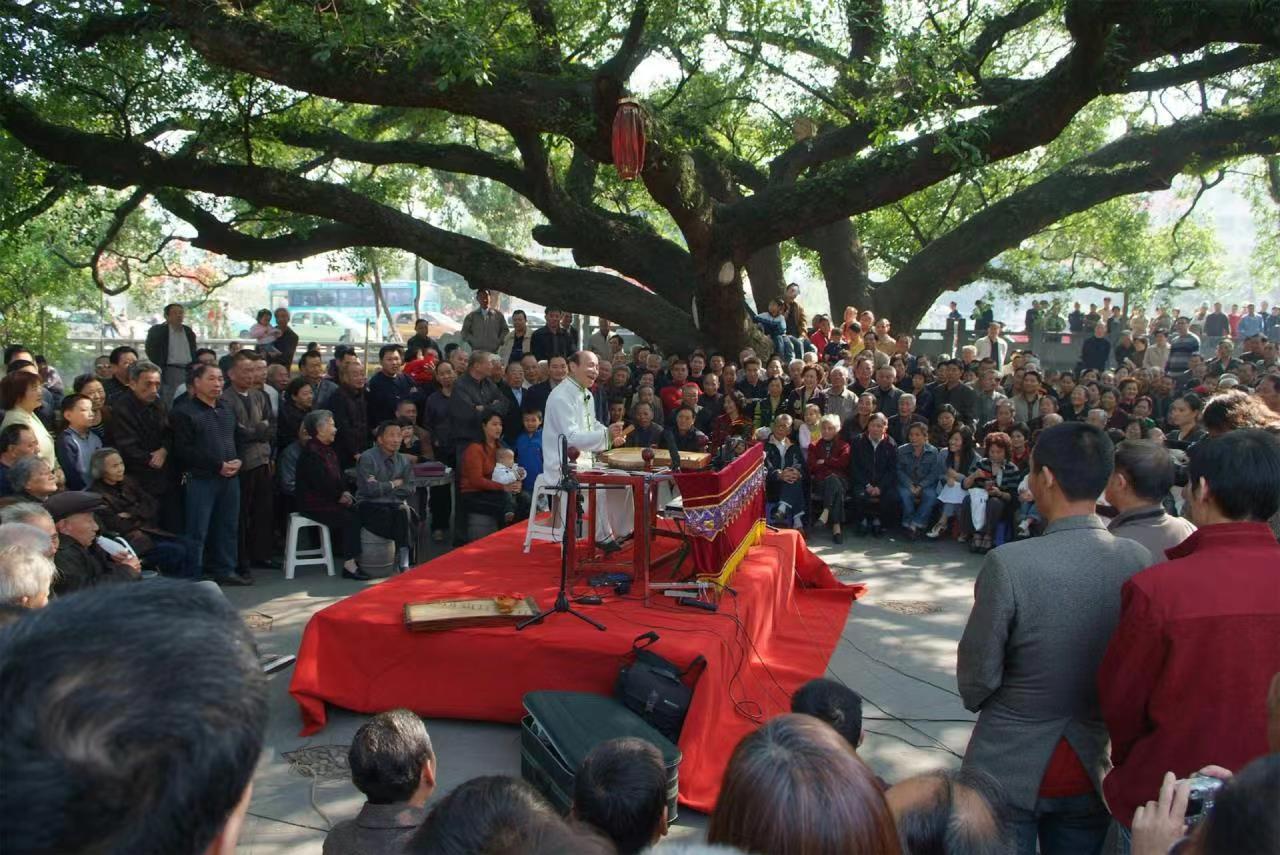“终身成就曲艺艺术家”阮世池在公园里表演