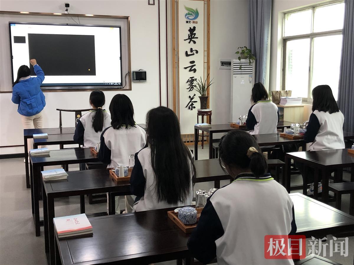 据了解,根据英山一中校方要求,每位学生在校期间要完成6个课时的茶艺课程,3节课用来学习茶文化的理论知识,包括茶的起源、茶的分类、博大精深的中国茶文化,以及基本的茶艺礼仪;另3节课用全套茶具进行实操训练,完成一个完整的绿茶玻璃杯茶艺表演。