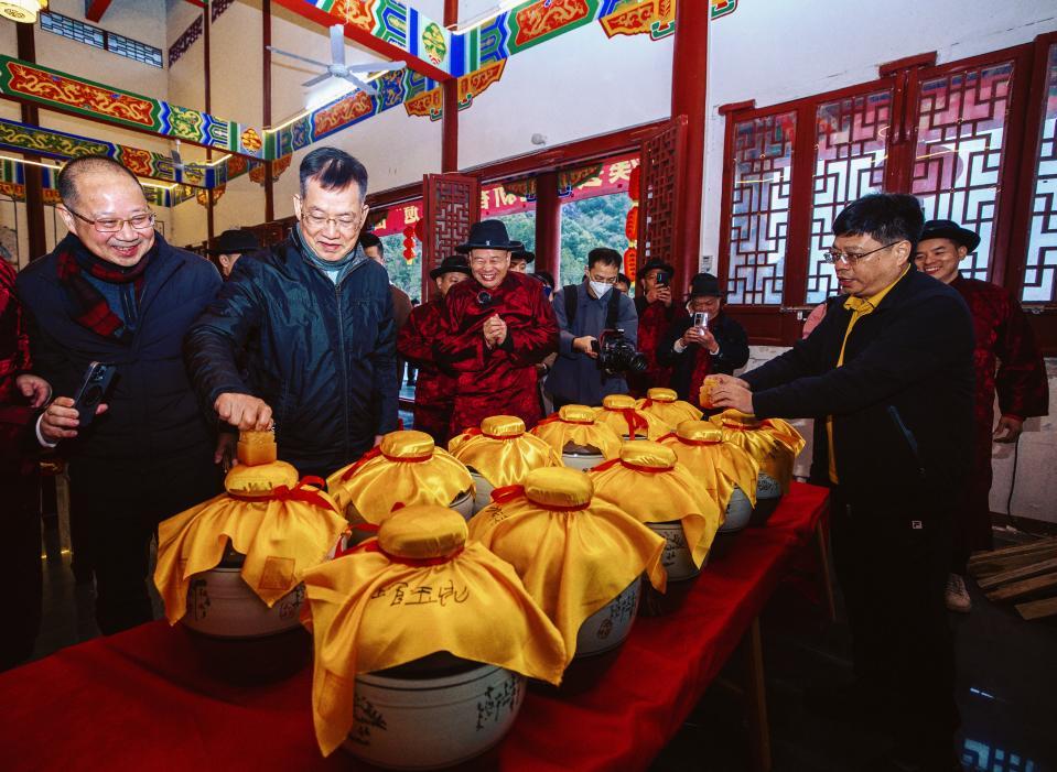 秋收冬藏、封坛藏茶,是茶乡的古老民俗。讨论结束后,在大家的见证下,国家级非遗代表性传承人和中国制茶大师、安溪铁观音大师、安溪铁观音制茶工艺大师,将他们在2022年的代表性铁观音茶品封坛贮存,每人2坛,代表2022年庆双遗,纳双喜。