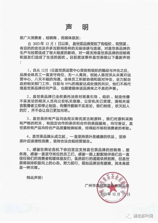 昌世茶的董事长陈世鸿曾回应:“事件自始至终不存在违法行为,纯属生意,公司没有任何人承诺任何回购价格,所有买卖都一手交钱,一手交货。”