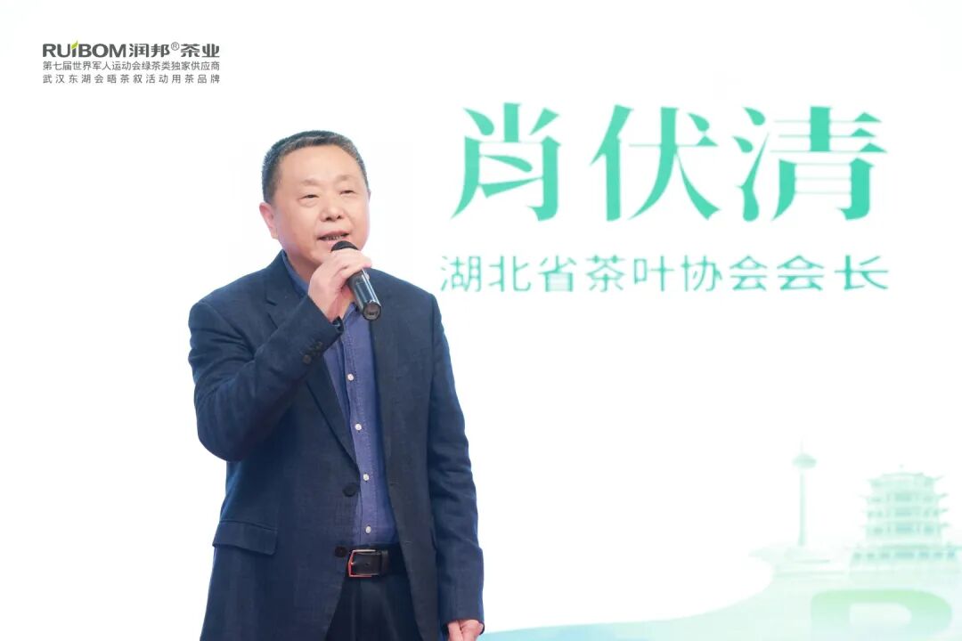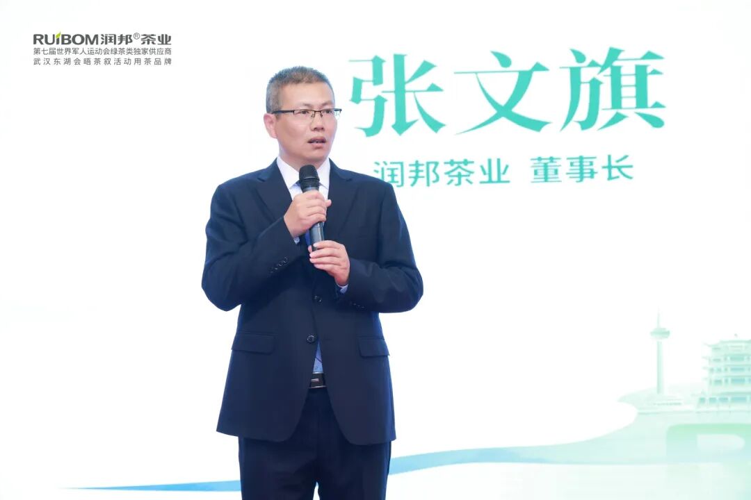 恩施玉露茶产业协会会长 润邦茶业董事长张文旗致辞 中国国际茶文化研究会副会长、湖北省茶叶协会会长、 省农业农村厅原厅长肖伏清致辞 恩施州、市农业农村局领导 为2025年获得恩施硒茶建店补贴的润邦合作伙伴颁奖 2025年度润邦茶业“优秀合作奖”获得者合影 2025年度润邦茶业“销售精英奖”获得者合影 “润邦玉露”号卫星冠名启动仪式 润邦茶业与课植窑联合产品发布 润邦茶业副总经理张闰宇主持本场活动 现场全体嘉宾合影