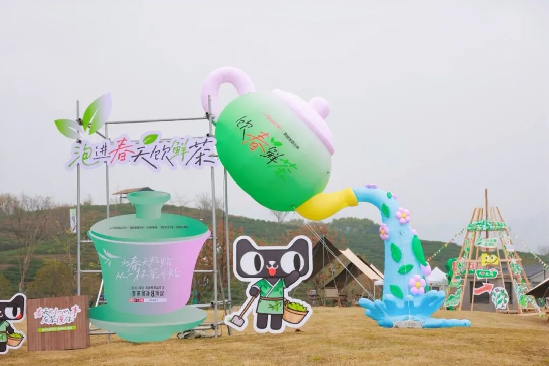 “自在生活场”特色市集:由西湖区供销社联合中国美术学院阿特兽艺术市集打造的“供销茶肆·春山灵兽集”汇集了近百个特色摊位,融合艺术原创、茶事周边、美食露营与春茶纸鸢大会,生动诠释了龙坞茶镇“泡在龙坞,自在舒服”的生活理念。