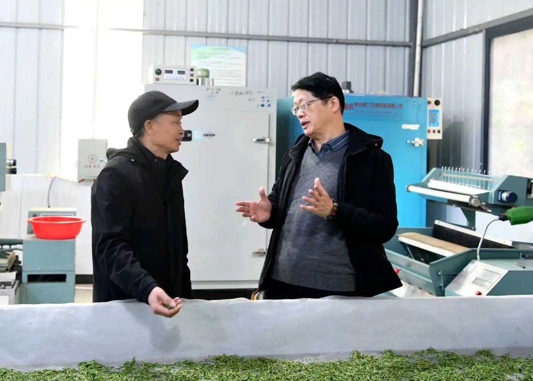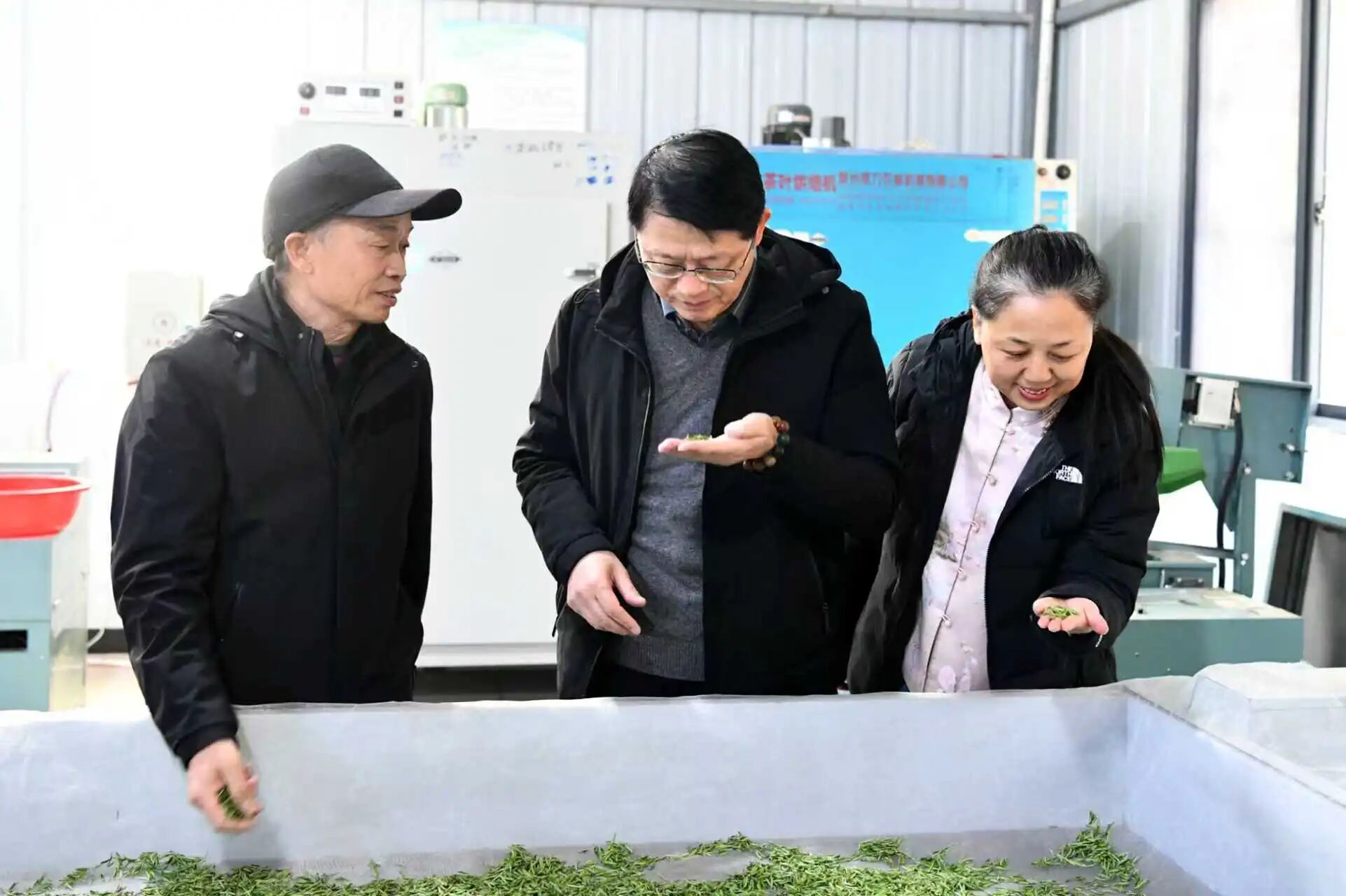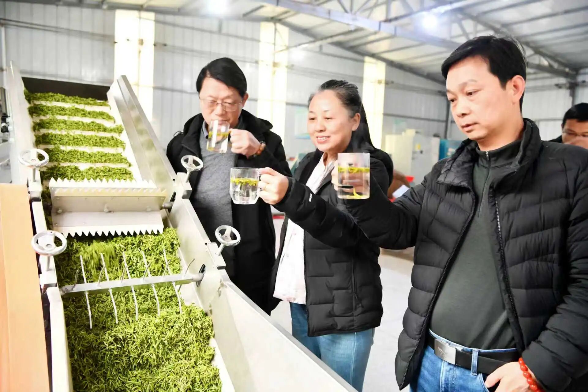 随后,专家组走进茶叶加工车间,逐一查看加工设备运行、制作工艺流程,重点询问杀青、揉捻、烘干等核心环节的技术把控要点,对基地标准化、规范化加工流程予以充分肯定,并围绕提升加工精细化水平、丰富产品品类、优化茶叶口感风味等方面提出具体改进方案,助力品质再升级。