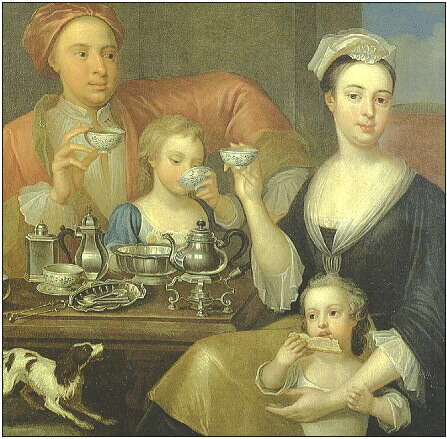 与法国人、荷兰人和葡萄牙人相比,英国人饱受战争蹂躏,政权上四分五裂,而且国家相对弱小,接受茶饮品比较慢。17世纪50年代,少量茶叶进入英国,但直到17世纪60年代,尤其是在光荣革命之后,茶文化才开始在不列颠群岛和北美部分地区生根发芽。在此后的几十年中,茶叶成了“物质大西洋”的重要组成部分。