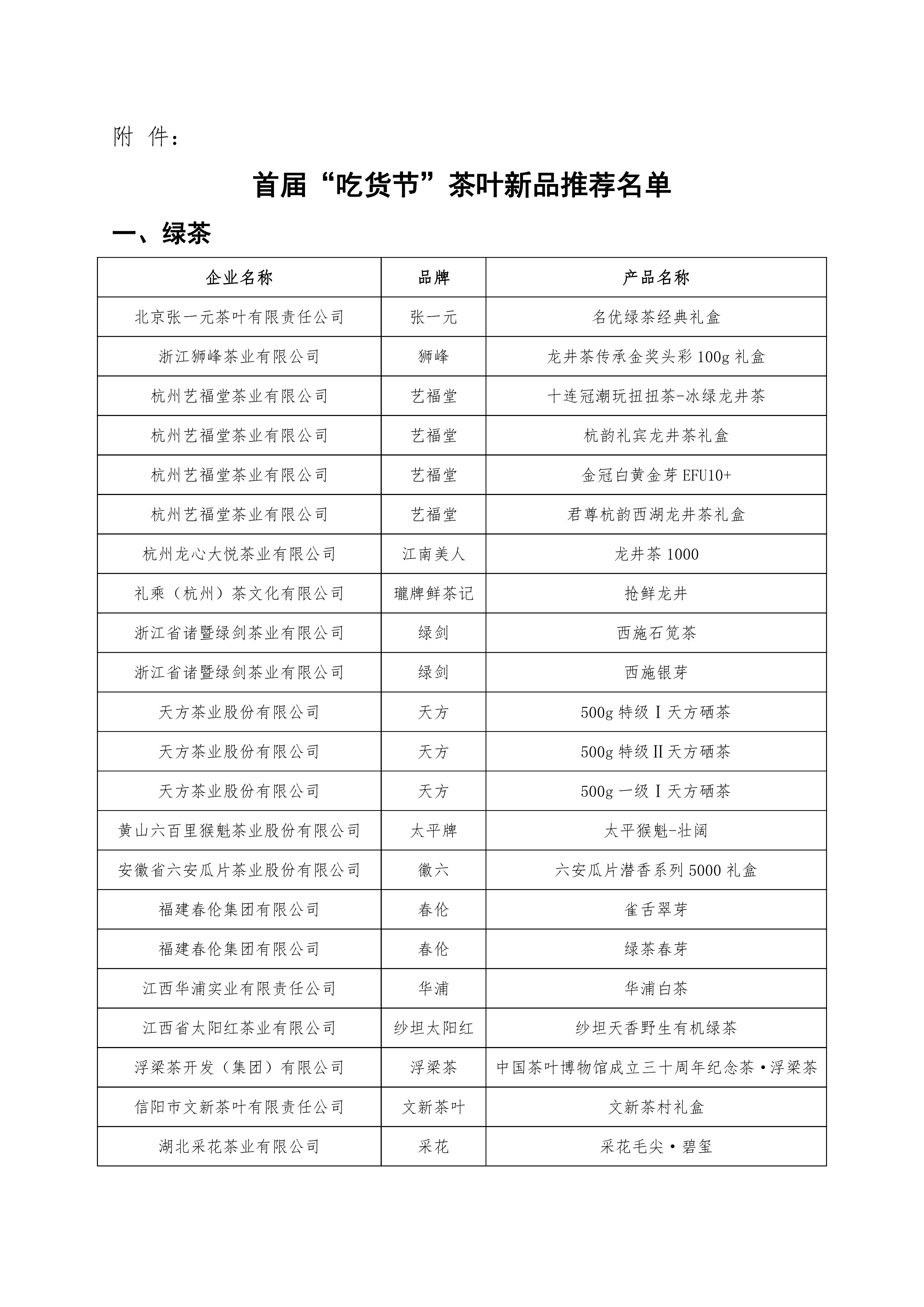 关于发布首届“吃货节”茶叶新品推荐名单的通知