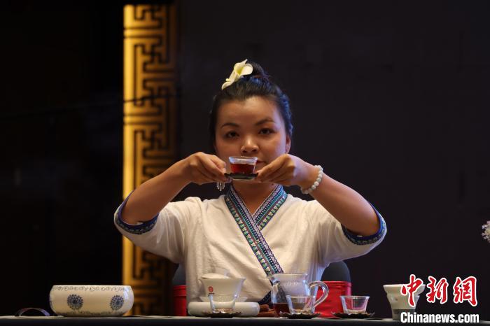 图为国家高级茶艺师现场冲泡低氟普洱健康茶。 米玛欧珠 摄