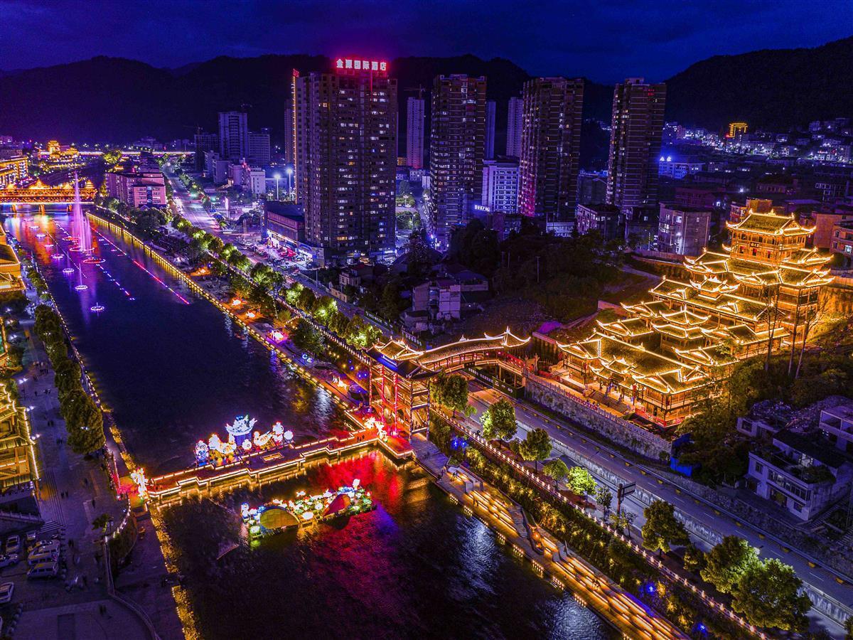 在宣恩仙山贡水,看夜景,食烟火