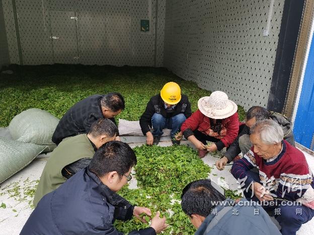 湖北茶叶网消息(湖北日报网讯 记者许文秀 见习记者唐天琪 通讯员杨凡、左腾木)青山添秀色,绿野泛春潮。傍晚时分,枞阳坡村村委会门前的茶叶加工厂十分热闹,三岔片区几个村的村民都陆续赶来交茶。“婶娘,您采了多少茶叶我们都收!”村民代表陈月友格外忙碌,手机响个不停,一边组织茶叶收购,一边耐心回答村民的问题。