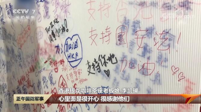 香港银龙咖啡茶座老板娘 李凯瑚:是在这里,(来了)一个深圳的男孩,他是20多岁,他哭出来了。他拿这个扇子给我,一展开,他说,你不是孤单一个人,你是“十四亿人茶餐厅”,我们十四亿人全部都挺你的。我看到的时候 (感觉)夸张啦,但是我自己心里面说,我们(头顶)是同一个天空,原来真的是一起的。(距离)很远,北京、湖南、河北,真的(来自)很远很远(的地方),但是他们真的是会跑过来告诉我,我们是挺你的。(我)心里面是很开心,很感谢他们。