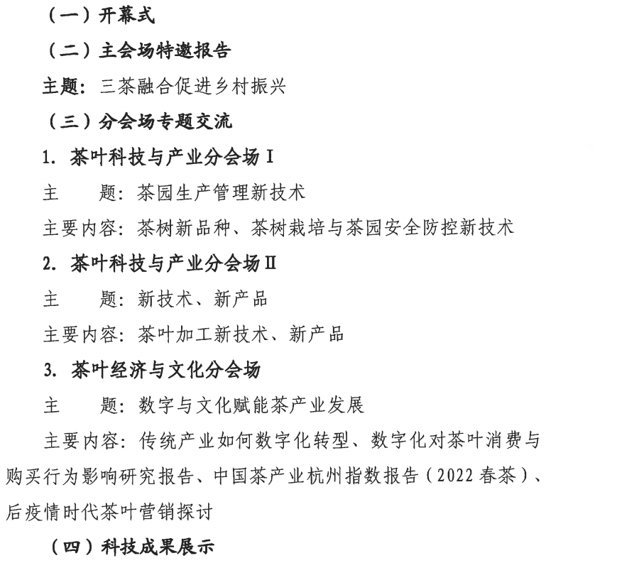 会议主题:三茶统筹发展 · 助力乡村振兴。届时,会议将邀请全国知名专家学者作特邀报告,此外设有茶叶科技与产业、茶叶经济与文化分会场报告。(详见通知文件)