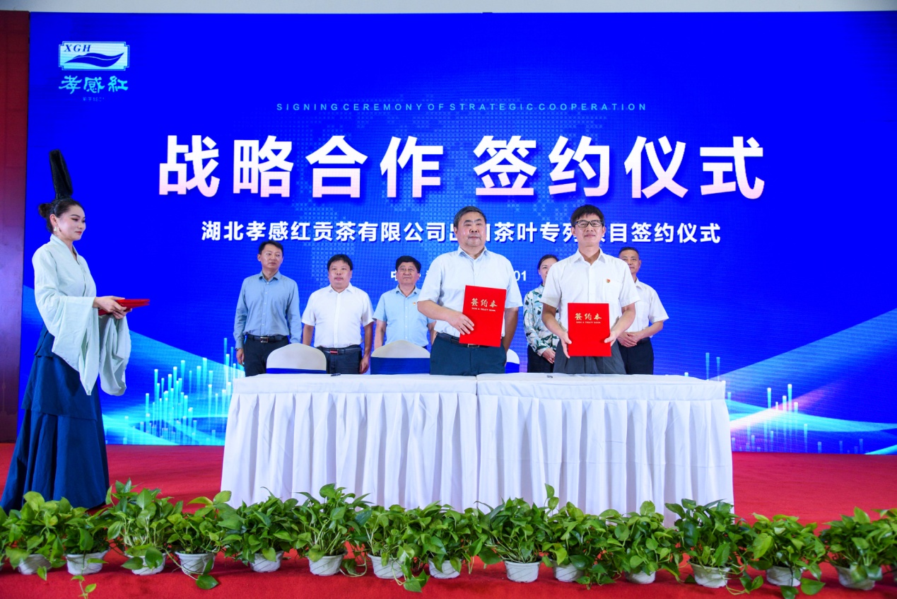 在孝感红专场推介会上,武汉汉新欧国际物流有限公司与孝感红贡茶有限公司签订国际物流服务协议,湖北中兴食品有限公司、湖北汉家刘氏茶业有限公司代表茶叶专列联合发货企业签订联合出口合作协议,利川市九龙茶叶、湖北悟道茶叶有限公司代表茶叶专列供应商签订出口红茶采购协议。皮少成在讲话中强调,希望孝感市积极响应国家“一带一路”倡议,充分利用资源优势、文化优势、市场优势,不断提高孝感红在国内外的市场竞争力和影响力,进而推动湖北茶叶走出国门、走向世界,为中国茶誉满四海,香飘“一带一路”作出新的更大的贡献。